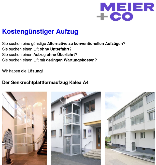 Für diese Firma besteht eine gute Referenz www.meico.ch/meicolift